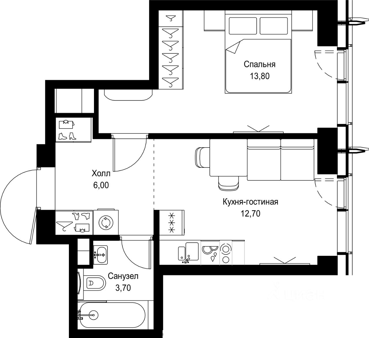 Продаётся 1-комнатная квартира общей площадью 36.20 м² без отделки в ЖК City Вау, квартале Pacific, на 12-м этаже 59 этажного дома.