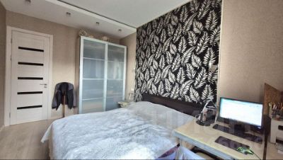 Полы - качественный ламинат , кухонная мебель современная со встроенной техникой! Гарнитур+5 единиц встроенной техники, 3 платяных шкафа (шкаф-купе, шкаф спальня + кровать + балкон шкаф, обувница).