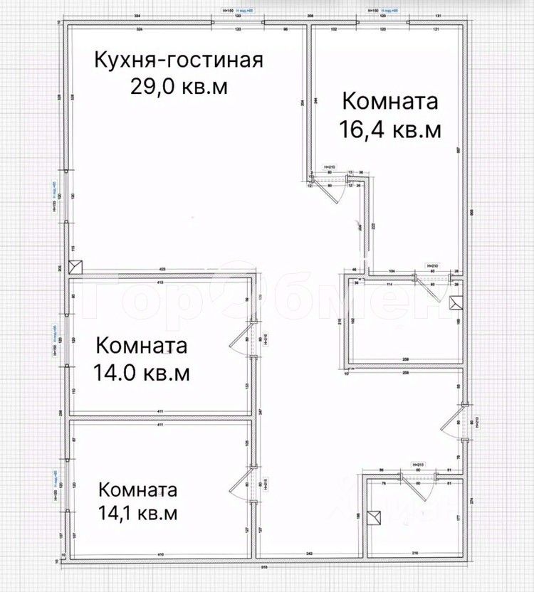 Трехкомнатная квартира площадью 98,4 м² на 23 этаже 49-этажного корпуса.