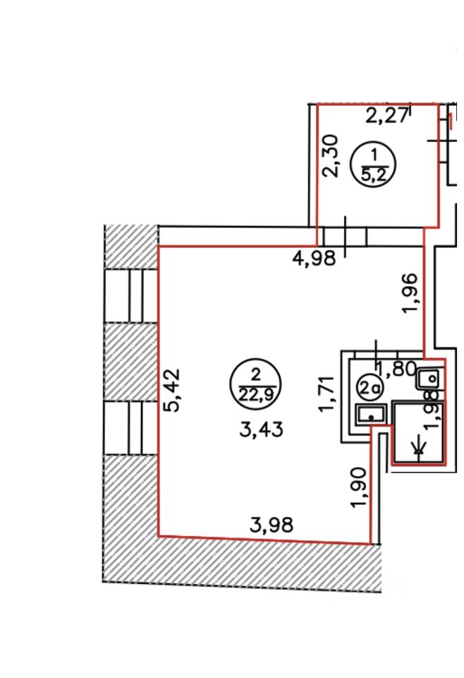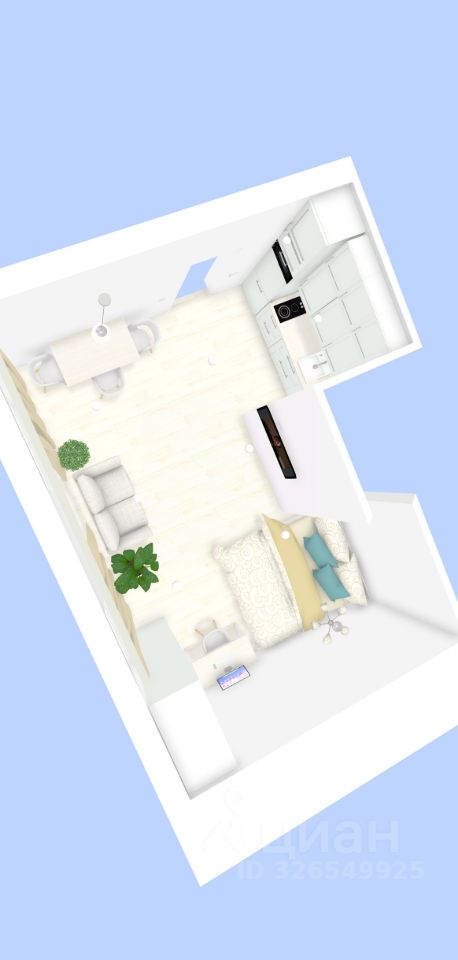 Площадь: 31,1 кв. м (комната 17 кв. м, кухня 5 кв. м).
