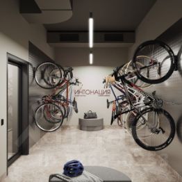 Двухуровневый паркинг рассчитан на 186 автомобилей и 27 гостевых мест. Есть возможность зарядки электромобилей, удобный подъезд для грузового транспорта, келлеры для хранения личных вещей и помещение для велосипедов.
