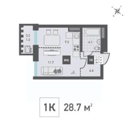 Продаётся 1-комнатная квартира в строящемся доме (Корпус 3), срок сдачи: IV-кв. 2026, общей площадью 28.7 кв.м., на 8 этаже. Жилой дом со встроенными нежилыми помещениями и подземной автостоянкой, расположенный по адресу: г. Москва, внутригородское муниципальное образование Матушкино, г. Зеленоград