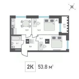 Продаётся 2-комнатная квартира в строящемся доме (Корпус 4), срок сдачи: IV-кв. 2026, общей площадью 53.8 кв.м., на 10 этаже. Жилой дом со встроенными нежилыми помещениями и подземной автостоянкой, расположенный по адресу: г. Москва, внутригородское муниципальное образование Матушкино, г. Зеленоград