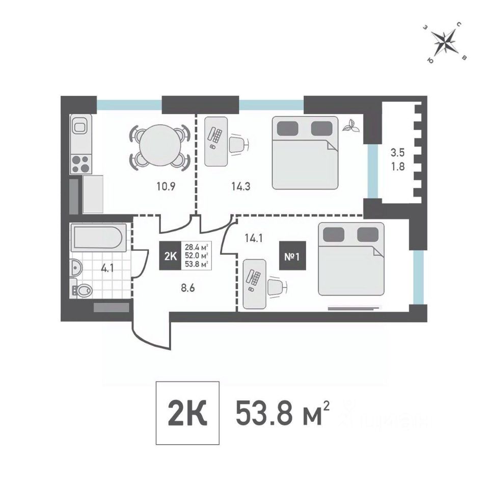 Продаётся 2-комнатная квартира в строящемся доме (Корпус 4), срок сдачи: IV-кв. 2026, общей площадью 53.8 кв.м., на 12 этаже. Жилой дом со встроенными нежилыми помещениями и подземной автостоянкой, расположенный по адресу: г. Москва, внутригородское муниципальное образование Матушкино, г. Зеленоград