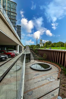 Знаковый проект для столичного рынка премиальной недвижимости: архитектура от бюро Сергея Скуратова выразительна и органично вписывается в ландшафт парка. Двор с концепцией "без машин". В доме предусмотрена торговая галерея для жителей: рестораны от Ginza project, фитнес, салоны красоты, спа, гастромаркет, детские секции, кинозал и многое другое.