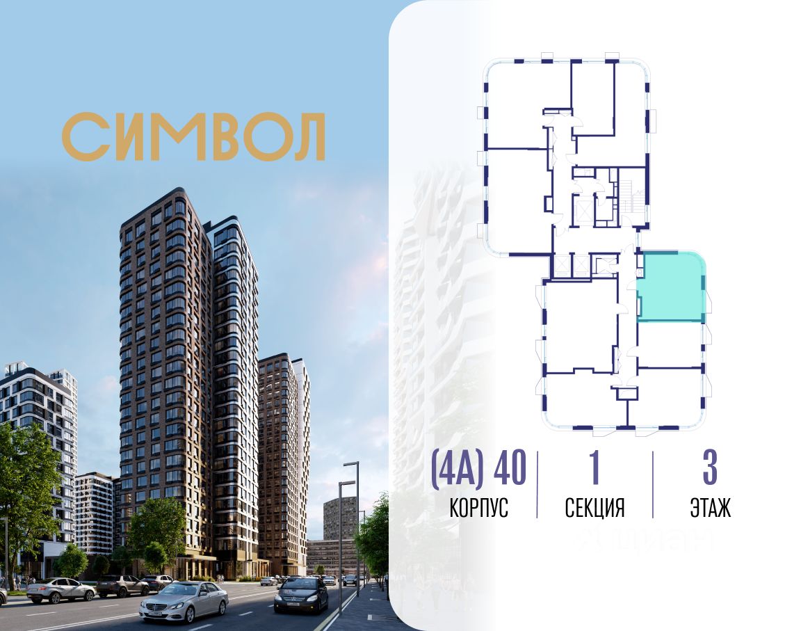 Продается 1-комнатная квартира от застройщика: общая площадь 36.90 м², жилая 14.10 м², кухня 15.60 м², 3-й этаж, жилой квартал "Гордость", корпус 40 (секция 1). Срок сдачи: 2 квартал 2029 года.