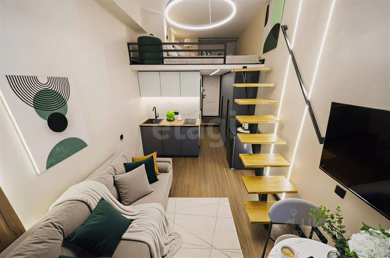 Это отличная инвестиция на долгий срок, которая принесет стабильный доход! Общая площадь студии составляет 21,3 кв.м: первый уровень 15,9 кв.м, второй уровень 5,4 кв.м. Высота потолков 3,2 метра.