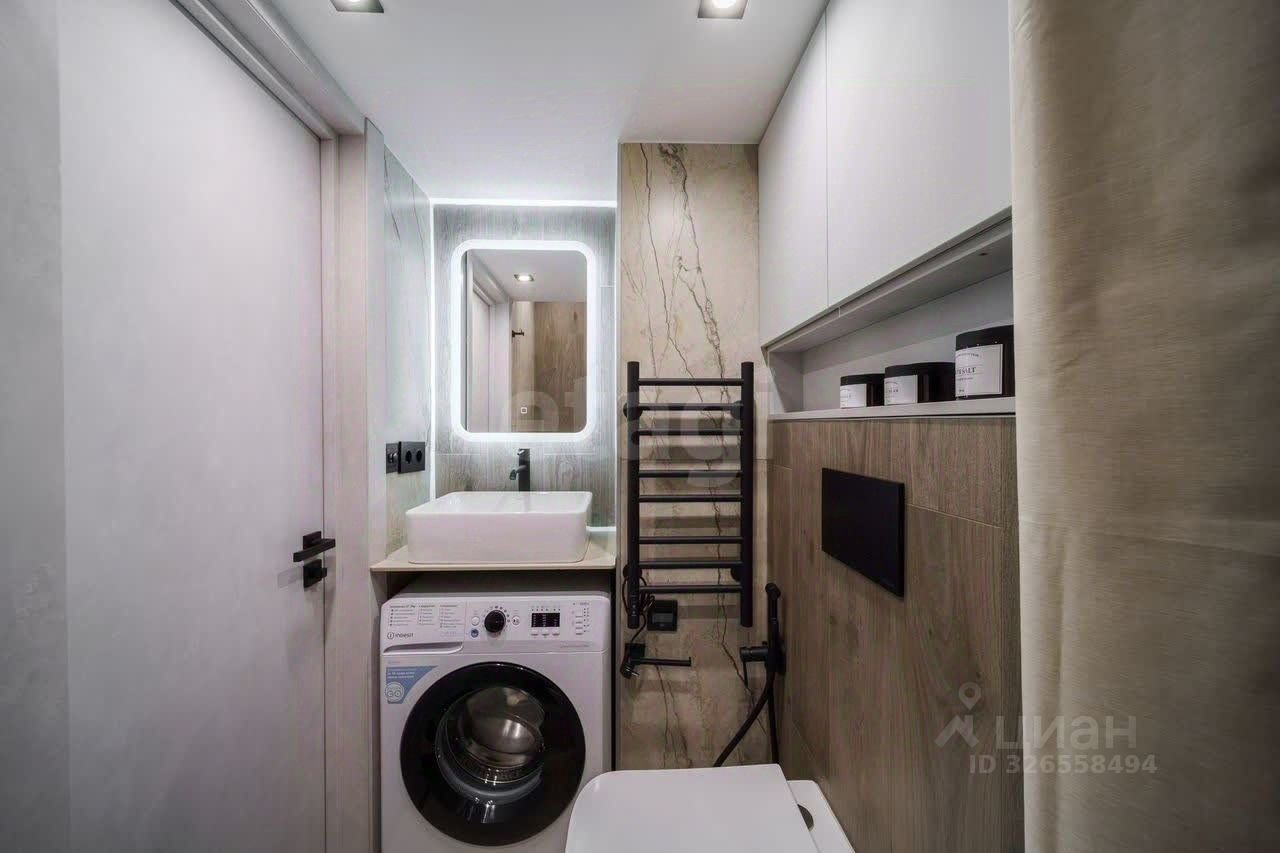- стильный санузел с современной сантехникой, тропическим душем, электрическим полотенцесушителем, гигиеническим душем, тёплым полом и стиральной машиной;