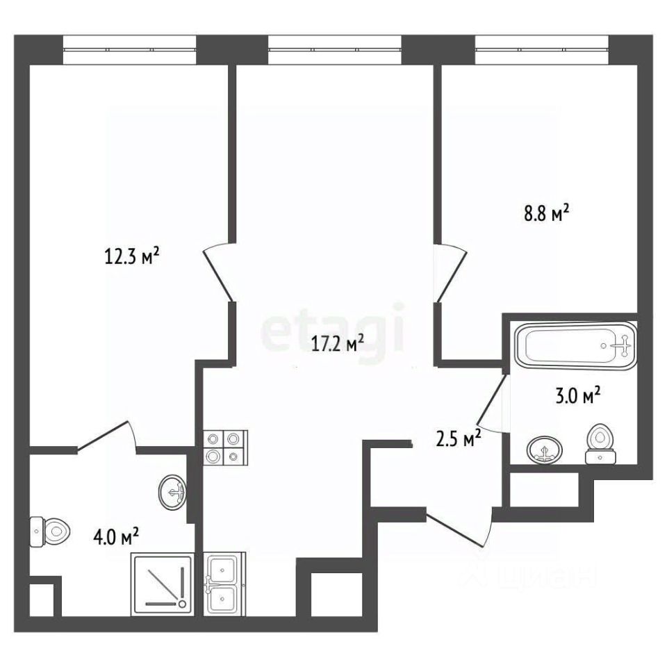 Продается просторная, светлая евро-трехкомнатная квартира площадью 47,8 м2 расположенная на 2 этаже 14-го дома (2-ой очереди) в ЖК "Balance" (Баланс). Удобная планировка квартиры - две изолированные комнаты 12,3 и 8,8 м2, кухня-гостиная 17,2 м2, два санузла. Черновая отделка.