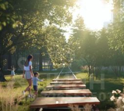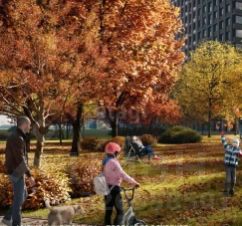 Благоустройство: на территории комплекса предусмотрены детские и спортивные площадки, а также озеленение. Центральное место в жилом комплексе отведено ландшафтному парку площадью 5 га.