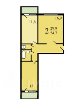 Продается просторная двухкомнатная квартира-распашонка с двумя балконами (на кухне и в комнате). Общая площадь квартиры без балконов составляет 54.7 кв. м, жилая площадь — 29.9 кв. м. Просторная кухня - 11.6 кв. м. Санузел раздельный. Установлены пластиковые окна.