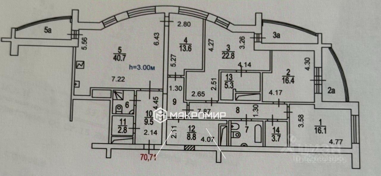 Параметры: 163 м², этаж 13/16, h=3,0 м.