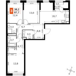 Продаётся 3-к квартира номер 136 общей площадью 87.7 кв.м. на 18-м этаже 29 этажного здания. Без отделки. Цена с учётом скидки.