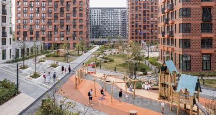 В шаговой доступности множество магазинов и супермаркетов, две поликлиники, за несколько минут можно доехать от дома на общественном транспорте до ТРК Афимолл Сити.