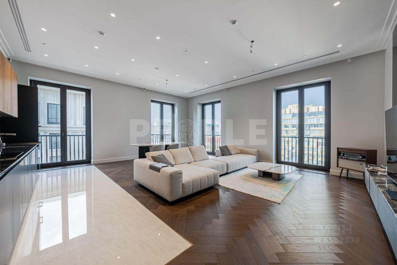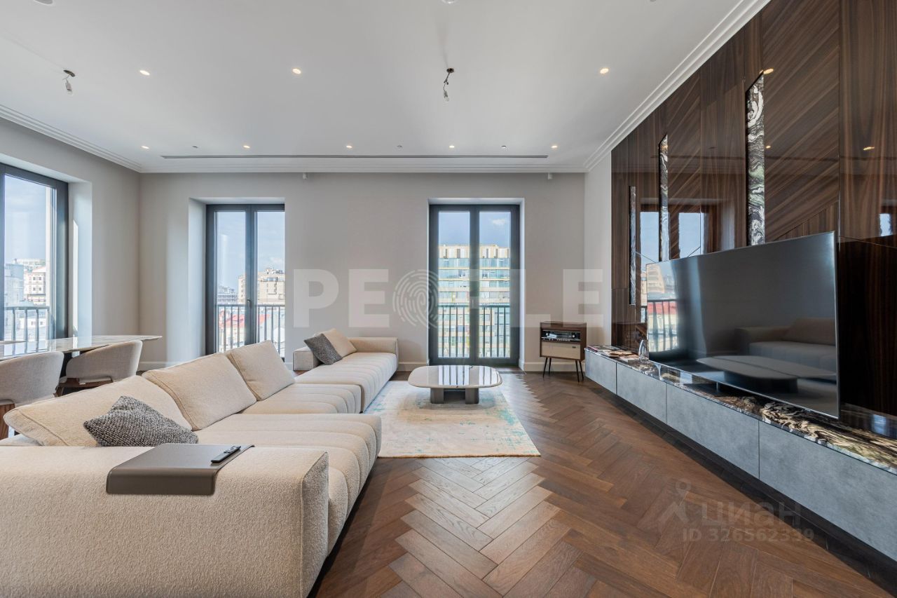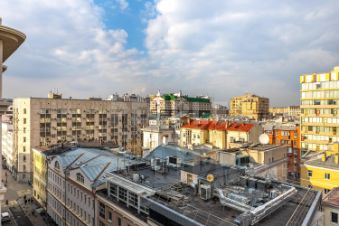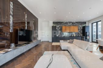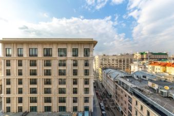 Из окон открываются виды на исторические особняки и знаковые достопримечательности Москвы. В дизайне квартиры использованы натуральные отделочные материалы премиального уровня. Шумоизоляция выполнена таким образом, что в квартиру не проникает ни одного постороннего звука. Кухня оснащена бытовой техникой премиум-класса. В санузлах установлено лучшее сантехническое оборудование, в отделке - только натуральный камень.