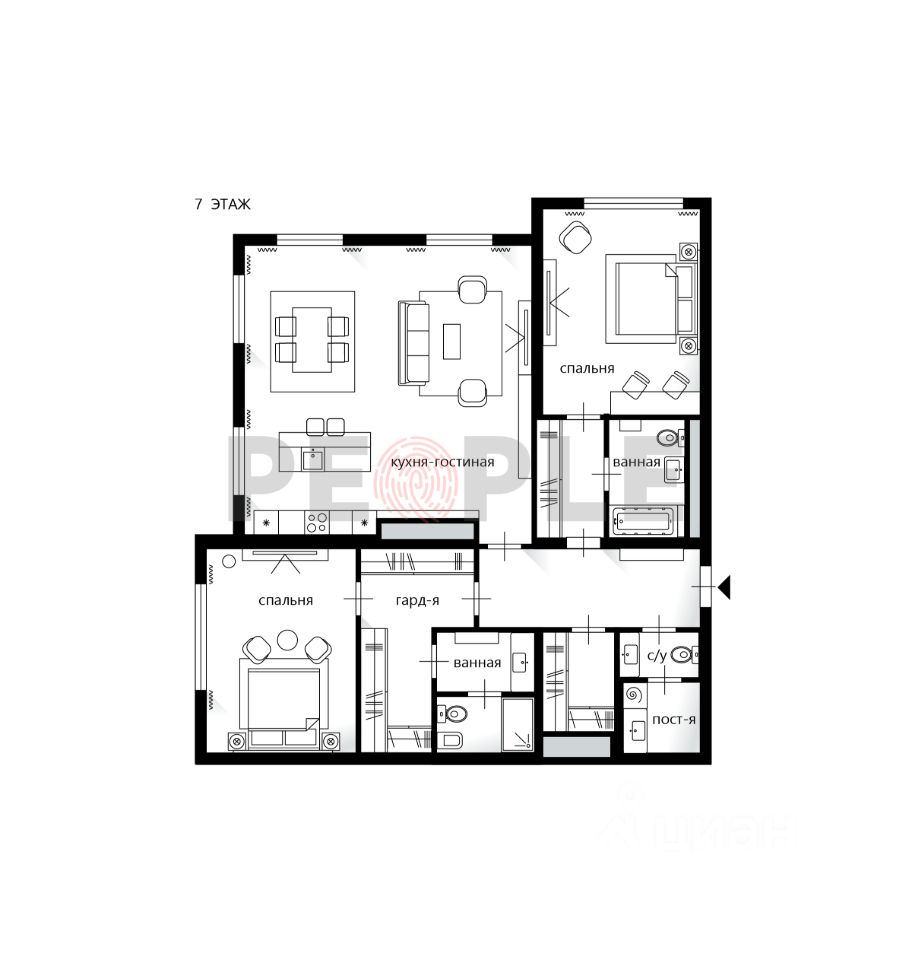 - 2 мастер-спальни со своими санузлами;