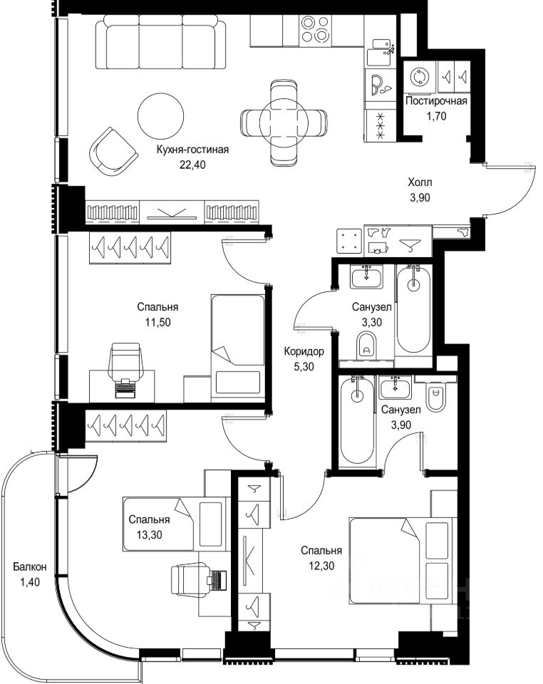 Продается 3-комнатная квартира от застройщика в жилом мультиквартале СИТИДЗЕН на 10-м этаже в корпусе #1 урбан-блока PARUS. Общая площадь лота составляет 79 м²