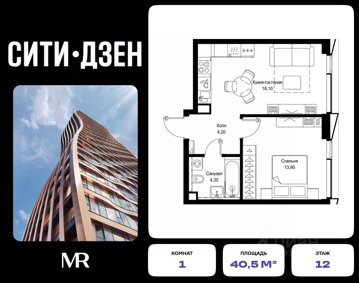 Продается 1-комнатная квартира от застройщика в жилом мультиквартале СИТИДЗЕН на 12-м этаже в корпусе #7. Общая площадь лота составляет 40.50 м²