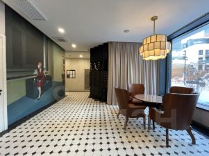 Квартира занимает 7 и 8 этажи, имеет собственную большую террасу 22,5м2 и выход окон на запад, благодаря чему в квартире много дневного света и красивые закаты. Идеальный вариант для тех, кто хочет ощущение загородного дома с камином и террасой в центре города.