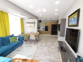 В квартире выполнен стильный дизайнерский ремонт с качественными материалами. Планировка включает три комнаты и две ванные: одна совмещенная и одна отдельная. Кухня-столовая просторная, с современным оборудованием. Вся мебель и техника подобраны с дизайн проектом.