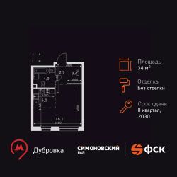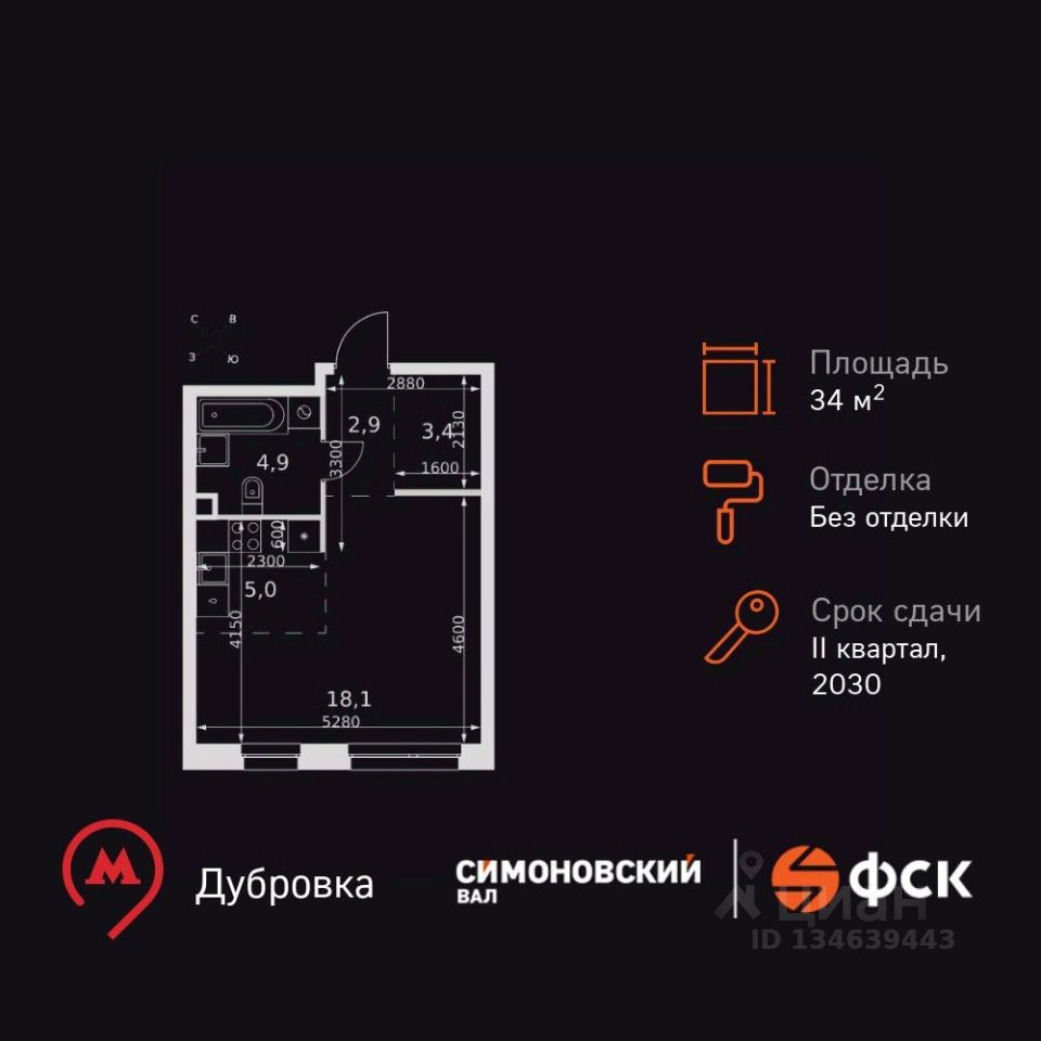 Продаётся квартира-студия номер 28 общей площадью 34.3 кв.м. на 4-м этаже 27 этажного здания. Без отделки.