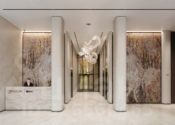 Лобби проекта наполнено светом и спокойствием - здесь хочется ненадолго задержаться, перевести дыхание. Мягкое освещение создают авторские светильники: они подчеркивают архитектуру пространства и не утомляют глаз. Акцентный элемент - мозаичное панно с растительным мотивом, выполненное из керамических пластин, которое придает интерьеру изысканность и художественную выразительность."