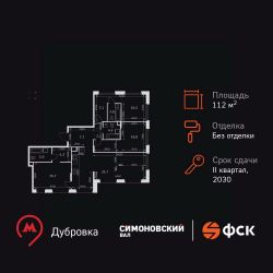 Продаётся 4-к квартира номер 246 общей площадью 112.7 кв.м. на 24-м этаже 27 этажного здания. Без отделки.