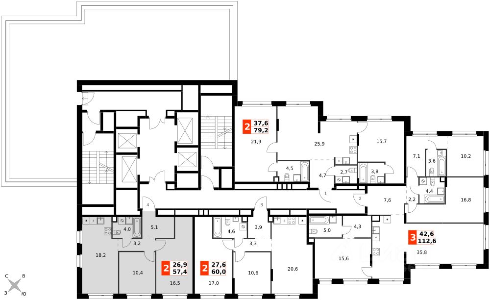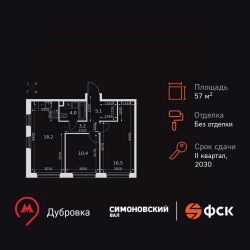 Продаётся 3-к квартира номер 244 общей площадью 57.4 кв.м. на 23-м этаже 27 этажного здания. Без отделки.