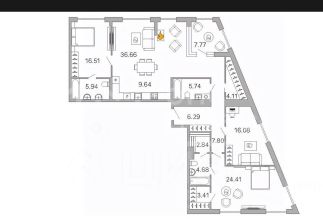 **3 изолированные спальни**3 санузла ** полноценная кухня-гостиная + сушильно-гладильная комната (гардеробная).