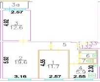 Общая: 58,4 кв.м, Жилая: 44,1 кв.м, Кухня: 6 кв.м,