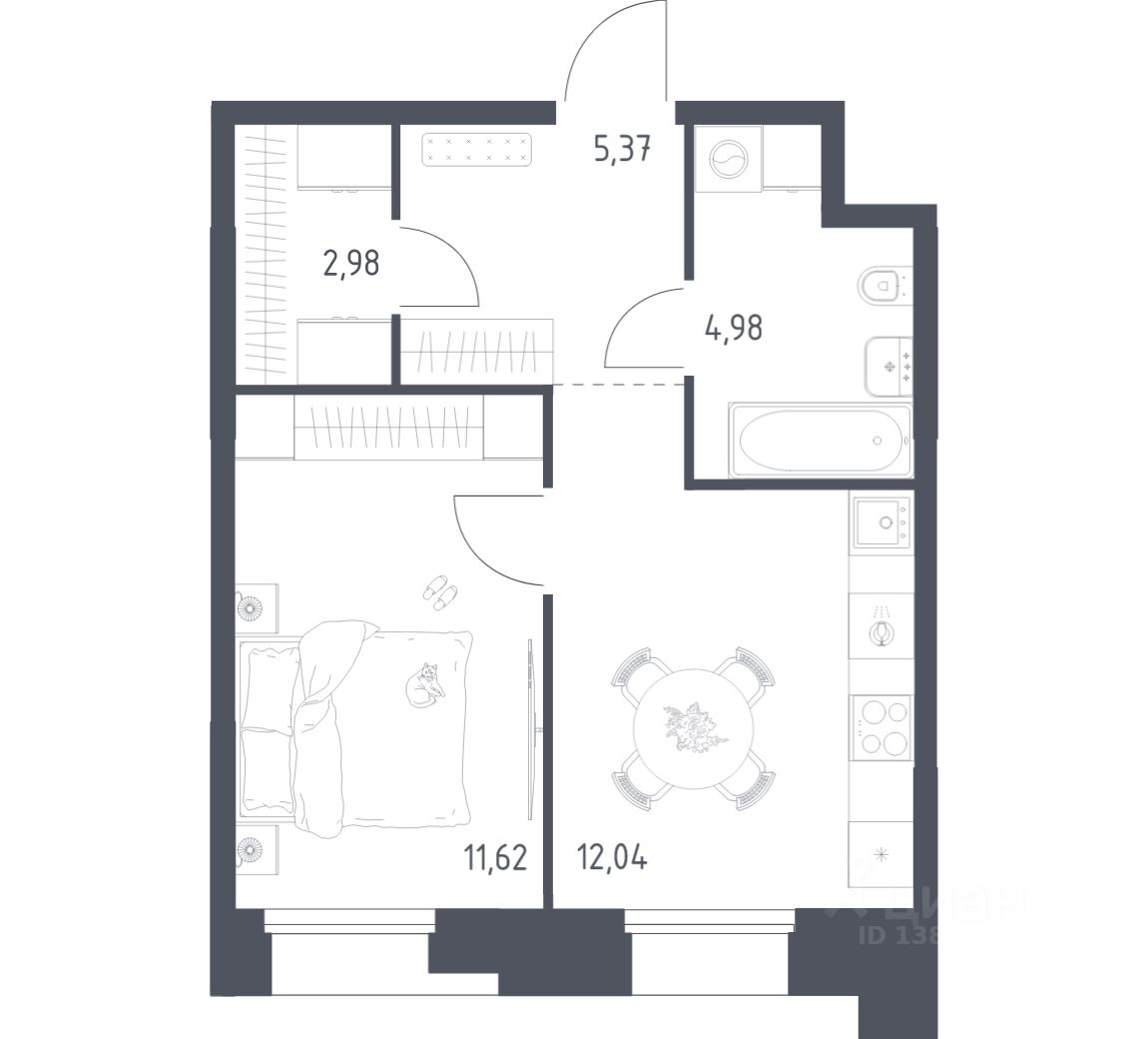 Строим кварталы для жизни с заботой о будущем. Предлагаются 1-комнатные апартаменты бизнес-класса площадью 36,99 кв.м в корпусе 2.2 на 2-м этаже, в жилом комплексе "Тропарево Парк".