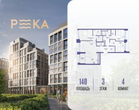 Продается просторная квартира площадью 140.00 м2 в жилом комплексе РЕКА. Квартира находится в 5 секции корпуса 3 (будет введен в эксплуатацию в 4 кв. 2026). Этаж 3-й из 10.