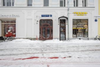 - отреставрированная входная группа дома: огромные двери из массива дерева с большими стеклянными вставками дают понять, что это не просто дом в центре Москвы, а дом с богатой историей!