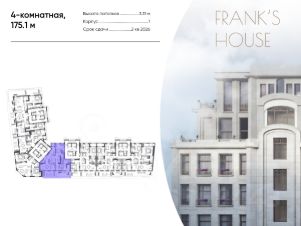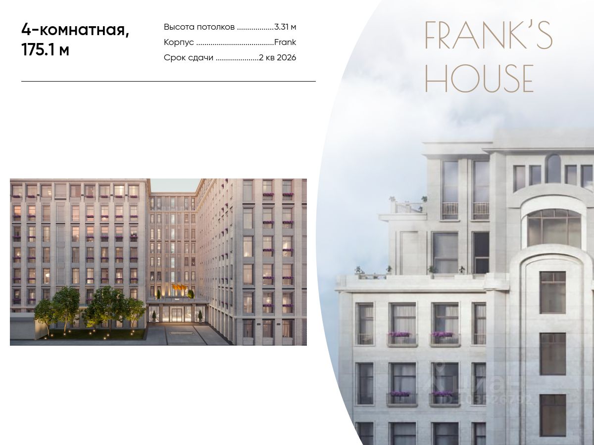 Продается четырехкомнатная квартира в ЖК "Дом Франка" по адресу Москва, ЦАО, Мещанский, Большой Кисельный переулок, д. 11, корп. 1 Общая площадь квартиры - 175,10 кв.м., этаж 6. Стоимость квартиры - 516 545 000 р.