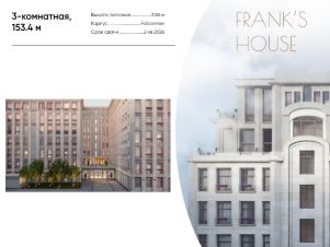 Продается трехкомнатная квартира в ЖК "Дом Франка" по адресу Москва, ЦАО, Мещанский, Большой Кисельный переулок, д. 11, корп. 3 Общая площадь квартиры - 153,40 кв.м., этаж 8. Стоимость квартиры - 452 530 000 р.