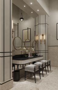 - лобби с отделкой из натурального камня, арочные потолки холла из стеклянного кирпича, натуральное дерево;