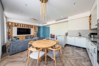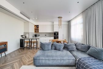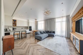 Отделка и мебель: потолок 3 метра в чистом виде. Квартира продается со всей встроенной мебелью и техникой. Стены- покраска. кухня столешница - камень. Техника Asko, сантехника Villeroy&Boch и Тесе со встроенным биде. Гостиная стеллаж и обеденная группа - шпон. Установлена дорогостоящая приточно-вытяжная система вентиляции, совмещенная с системой кондиционирования. В спальнях приточная с естественным отводом. (не была предусмотрена застройщиком, делалась дополнительно). Теплый пол, электрокарнизы, диспоузер на кухне, фильтры для воды, бойлеры и многое другое. Квартира делалась для себя, качественно, износ минимальный и почти отсутствует.