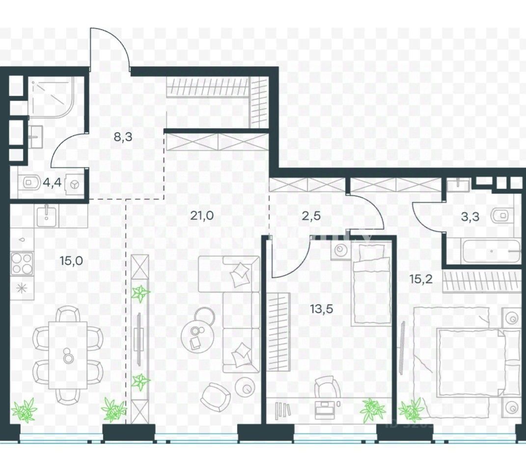 Квартира без ремонта, что позволяет воплотить ваши идеи в планировочное решение.