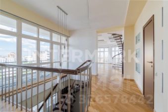 ID 28009. Предлагается к продаже роскошный видовой трехуровневый пентхаус в клубном доме бизнес-класса в центре Москвы, с прямым выходом в Таганский парк и близостью к знаковым историческим объектам. Общая площадь квартиры составляет 330 кв.м. (без учета лоджий). Особенностью является трехэтажная планировка, позволяющая эффективно зонировать пространство. Эффект "второго света", высокие потолки (3 метра) и окна в пол усиливают ощущение простора и света, а из окон открываются великолепные виды на городские достопримечательности. Планировка включает: на первом уровне прихожую, гардеробную, гостевой санузел, кухню-столовую, гостиную, две спальни и санузел, с эффектом "второго света"; на втором гостиную, три спальни, санузел и гардеробную; на третьем спальню, гардеробную и санузел. Отделка выполнена в классическом стиле, в светлых тонах. Для автомобилей предусмотрен подземный паркинг на два машиноместа. Дом имеет солидное входное лобби, охрану, видеонаблюдение, огороженную территорию и три лифта. В шаговой доступности находится вся необходимая городская инфраструктура, включая парки, школы, магазины, рестораны и спортивные объекты.