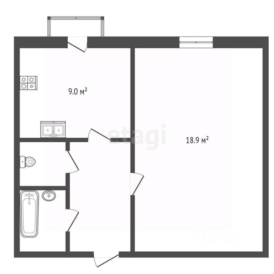 - Жилая площадь: 18,9 м²;