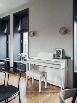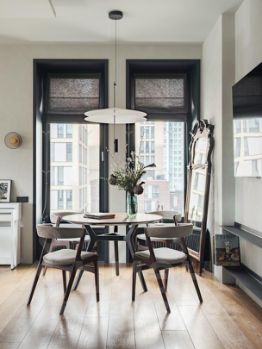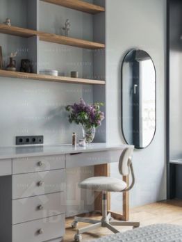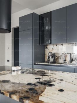 - Только премиальные материалы (натуральные камень и дерево): мрамор (подоконники), гранит "Патагония" (остров, столешницы и фартук), мраморная плитка Salvatori в душевой, плитка Fioranese в ванной, 16 мм дубовая инженерная доска Ebonyandco, декоративная штукатурка, краски Little Green и Benjamin Moore.