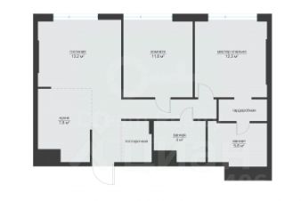 Планировка квартиры: кухня-гостиная 21 кв.м, хозяйская спальня 12 кв.м с санузлом с ванной и гардеробной, спальня 12 кв.м, санузел с душевой кабиной, холл с гардеробной. Общая площадь квартиры 69 кв.м.