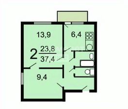 • Две комнаты 9.4 и 13.9 метров квадратных