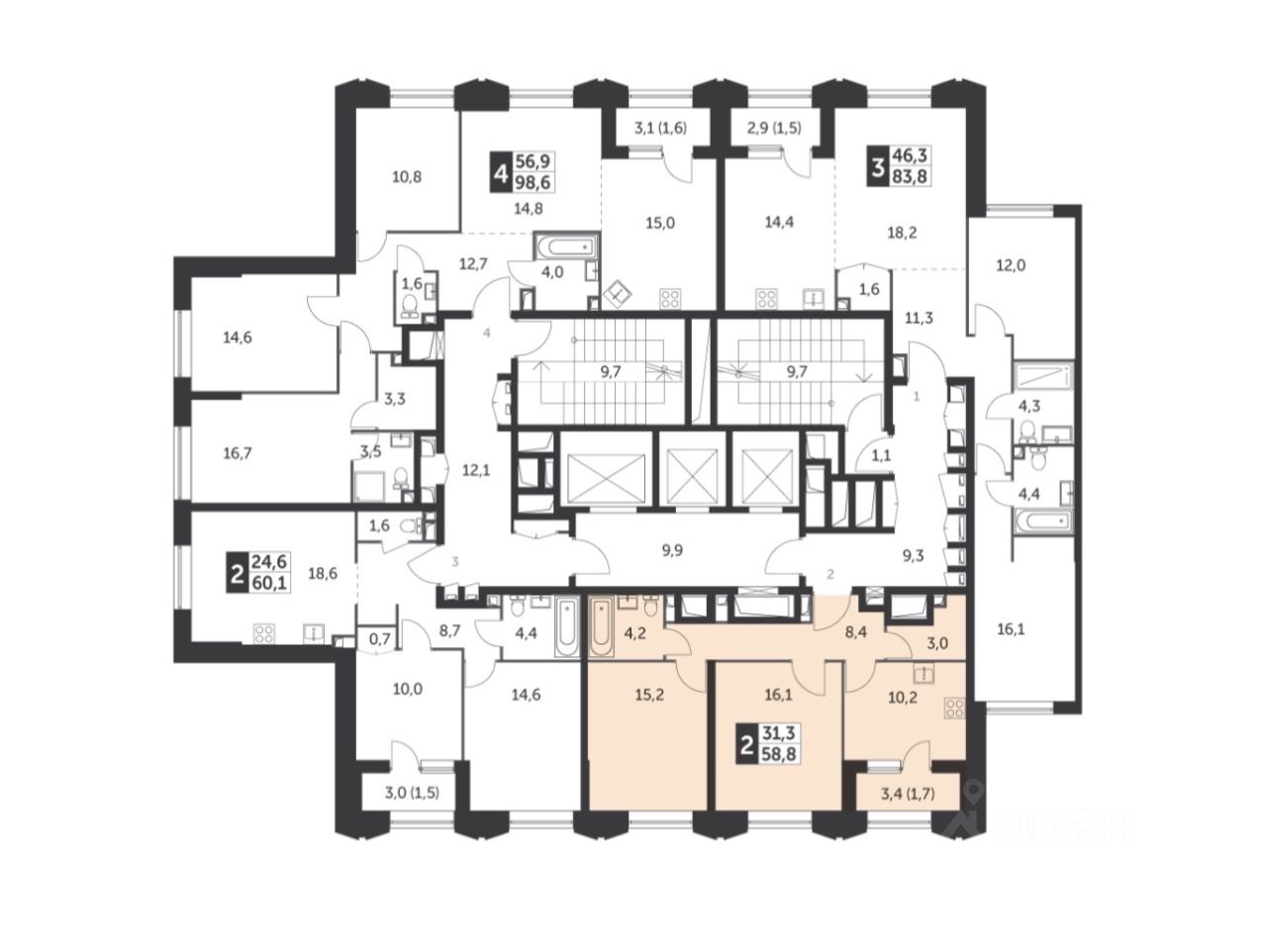 В продаже двухкомнатная квартира на юго-западную сторону с потрясающими видами на город, Останкинскую телебашню и колесо обозрения в проекте Режиссер, признанном лучшим у застройщика.