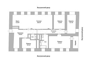 Изысканная квартира площадью 141.2 кв.м с отделкой в стиле эклектика в историческом особняке на Цветном бульваре.