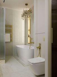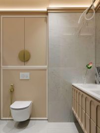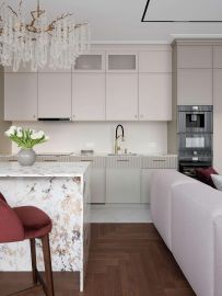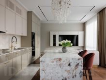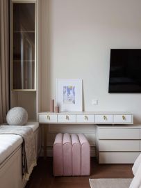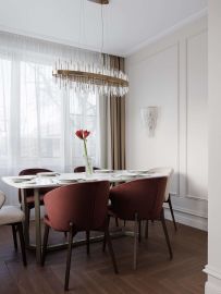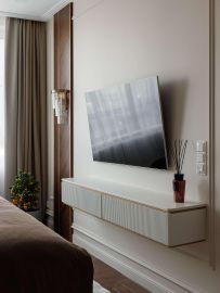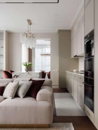 Дизайнерский ремонт создаёт ощущение простора и света. Нейтральная светлая палитра стен и пола служит идеальным фоном для ярких, сочных акцентов. Интерьер выглядит современно, дорого и очень уютно.