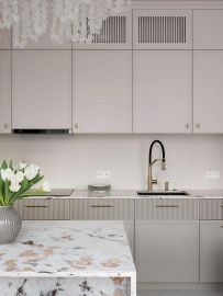 Просторная кухня-гостиная, где грамотное зонирование позволяет одновременно готовить ужин, общаться с гостями в зоне отдыха и смотреть кино. Это настоящее сердце дома.
