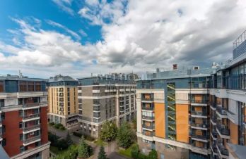 Блок расположен на последнем этаже (один на площадке) современного жилого комплекса премиум-класса, включающего в себя четыре дома в неоклассическом стиле.