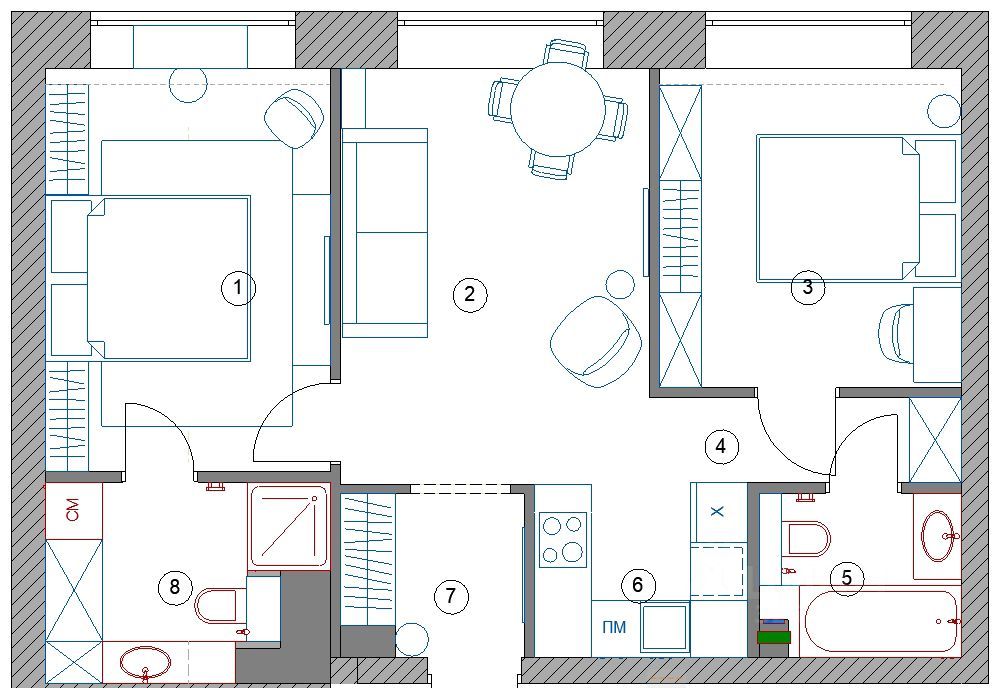 Комфортный этаж нет зависимости от лифтов. Лучшая планировка на 60 квадратах. Евро трехкомнатная квартира (гостиная, кухня-ниша, 2 спальни, 2санузла) с дизайнерским ремонтом. Много хранения.