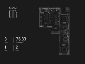 Продается 3-комнатная квартира в ЖК СЕЗАР СИТИ на 2 этаже. Общая площадь квартиры составляет 75,33 кв.м. Квартира без отделки. Срок сдачи - 2027 год.